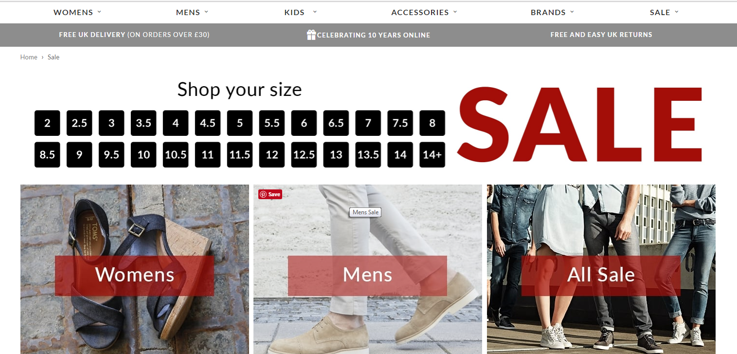 בסוף יוני מתחילה עונת הסיילים באנגליה וזו הזדמנות נהדרת עבורכם לרכוש נעליים במחיר מציאה בתחילת העונה שלנו. להלן רשימת האתרים המובלים:
